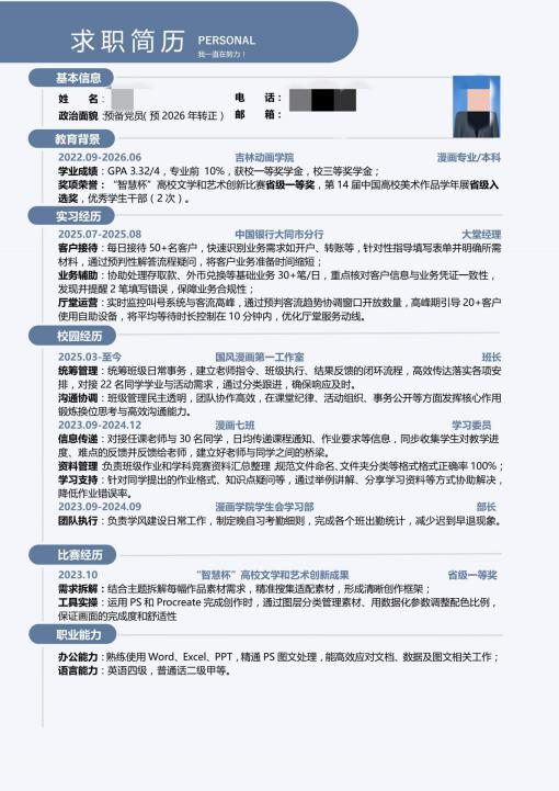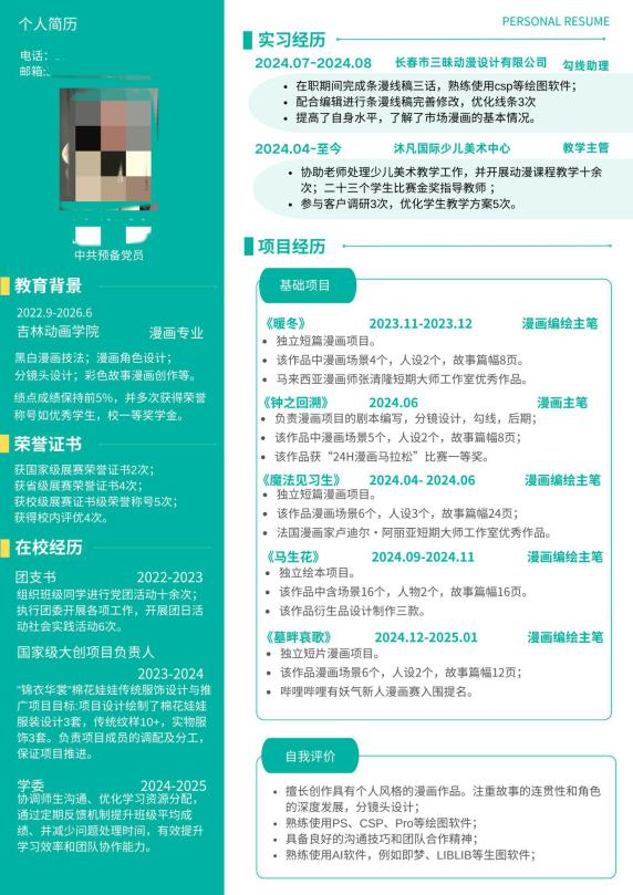 求职竞争日趋激烈,一份优质简历是学子敲开企业大门的关键“敲门砖”。此次学校举办的优秀简历评选活动,聚焦简历内容真实性与岗位适配性,要求作品完整呈现个人基本信息、教育背景、实践经历、技能证书等核心内容,严禁虚构信息,同时需结合实习或就业方向,清晰展现个人优势与岗位的契合度。漫画学院作为培养动画漫画专业人才的核心院系,深知专业学子在求职中既要凸显绘画、设计等专业技能,也要通过简历精准传递项目经历与实践能力,因此高度重视此次活动,将其作为毕业生就业指导工作的重要环节。