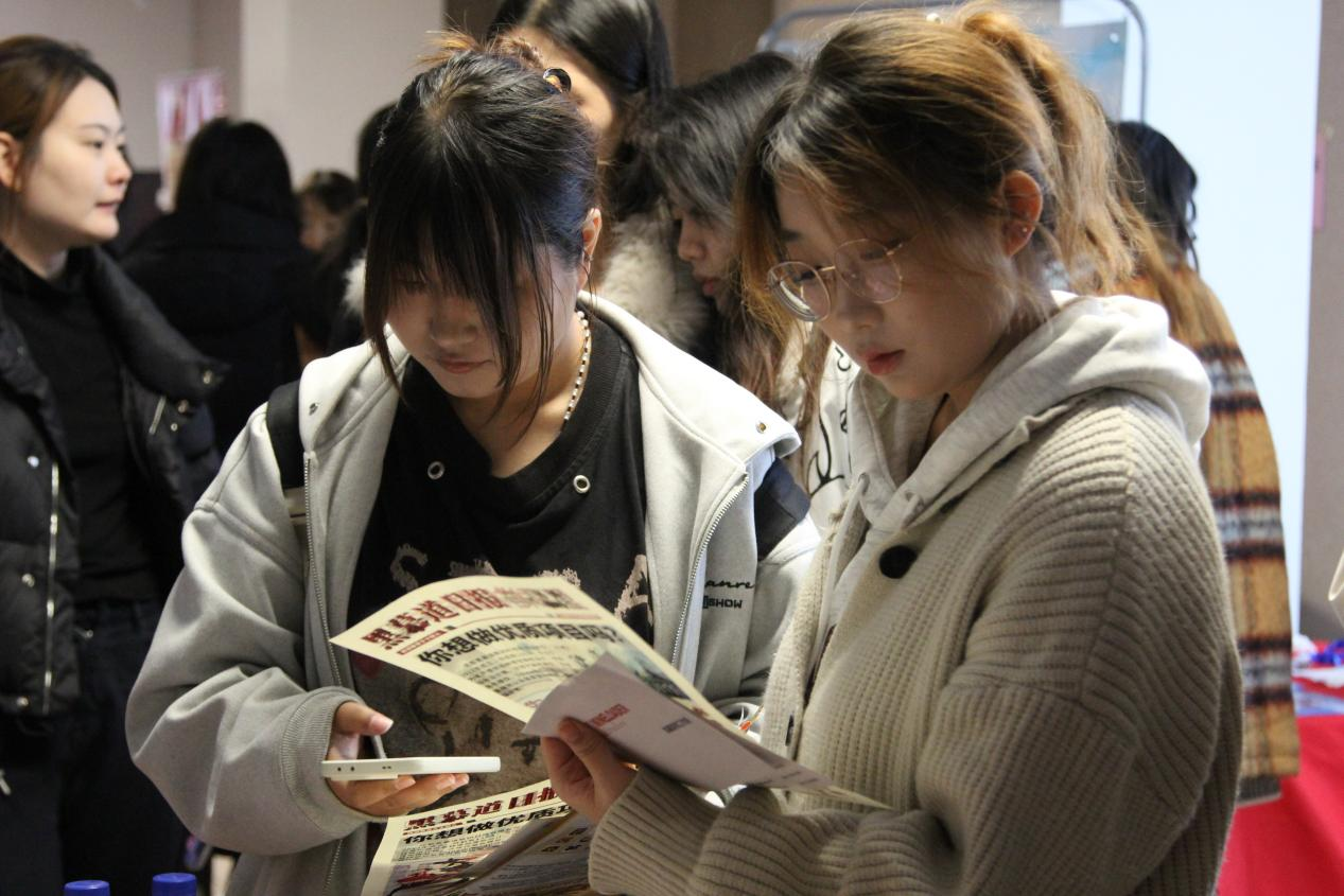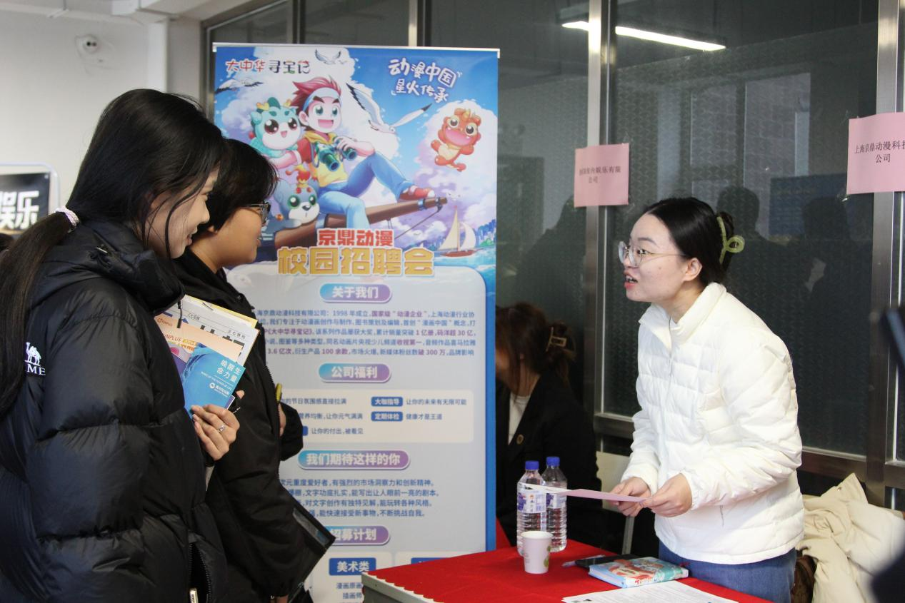 作为学校的特色学院之一,漫画学院此次组织了多家知名动漫企业参展,分别涵盖原创漫画创作、动漫IP开发、衍生品设计及数字漫画制作等多个领域。相较于其他区域,漫画学院专区从开场起便持续保持着超高人气,成为整场招聘会的“热门打卡点”。