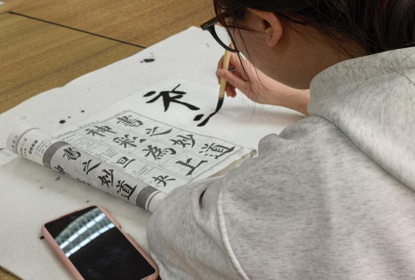 同学们满怀热忱,凝神静气、潜心练习,在一撇一捺中体会汉字之美。大家相互交流、彼此启发,积极投入书写实践与互动体验,在笔墨间舒展才情、涵养心性,展现出漫画院学子对传统文化的热爱与追求。