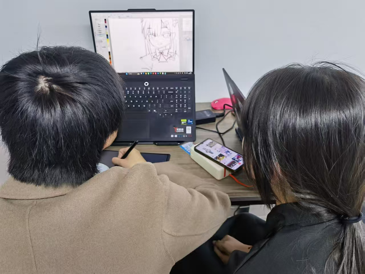 进入创作环节后,大家瞬间沉浸在专注热烈的艺术氛围中。成员们全情投入、各展所长,有的手持数位板精细勾勒,有的在画纸上铺色渲染,有的凝神构思分镜脚本。大家紧扣原创主题,大胆融合日系二次元、国风漫画、现代插画等多元风格,从Q版角色设计、短篇漫画分镜,到场景插画、原创IP人设,一幅幅兼具创意与功底的作品渐次呈现。
