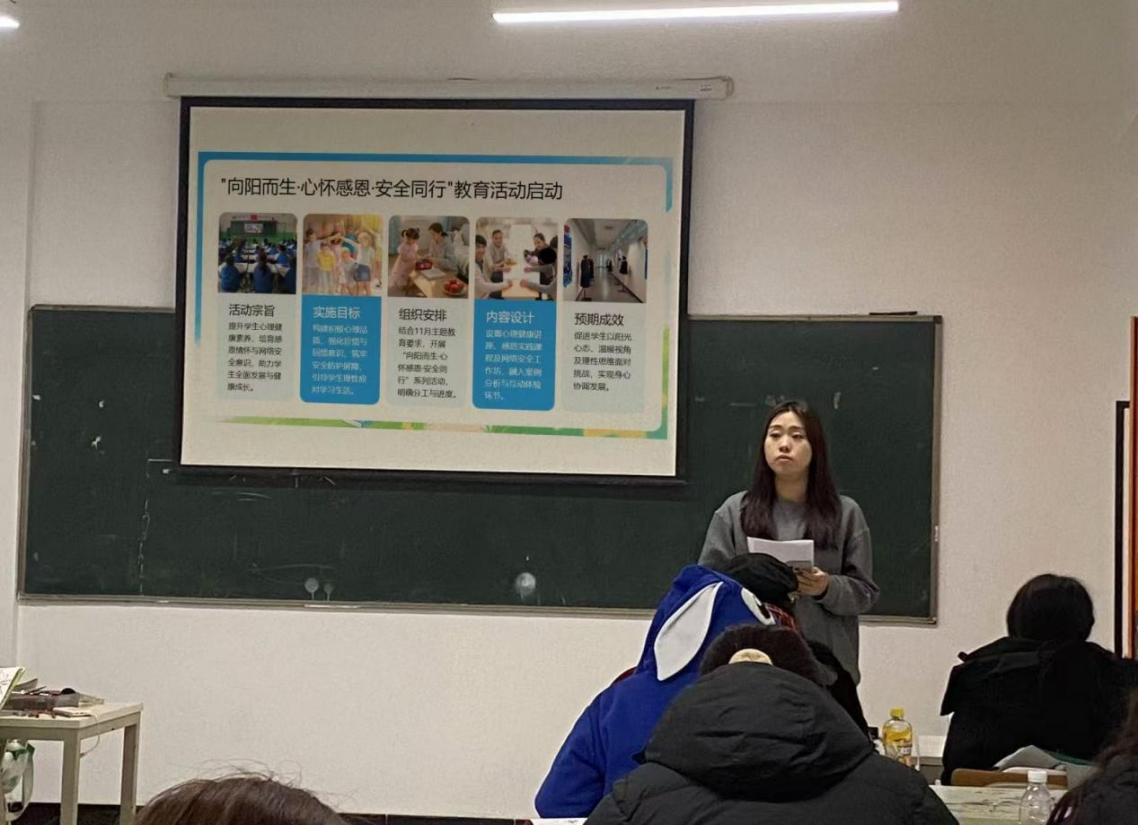 本次主题班会围绕三大核心主题分层推进,内容丰富且针对性极强。在“向阳而生,遇见更好的自己”板块,刘伟、孟益欣、卢琳等三位辅导员在各班级通过精心设计的心理互动游戏、压力疏导技巧分享、成长困惑答疑等环节,引导学生正确认知自我、接纳自我,学会用积极心态应对学习生活中的挑战。“常怀感恩,向阳而生”主题环节则满溢温情。辅导员们结合鲜活案例与感恩主题影像,唤醒学生内心的感恩情愫。在“感恩分享会”上,同学们纷纷讲述父母的无私关爱、老师的悉心教诲、同学的真诚陪伴,用朴实的语言传递真挚情感。部分班级还组织了感恩卡片书写活动,将心底的敬意与谢意付诸笔端,让感恩之心内化于心、外化于行,在校园中营造出珍惜情谊、懂得回馈的良好氛围。